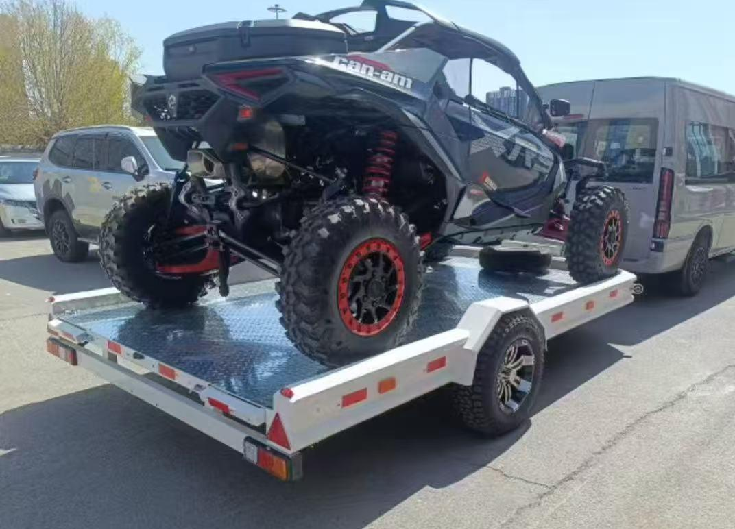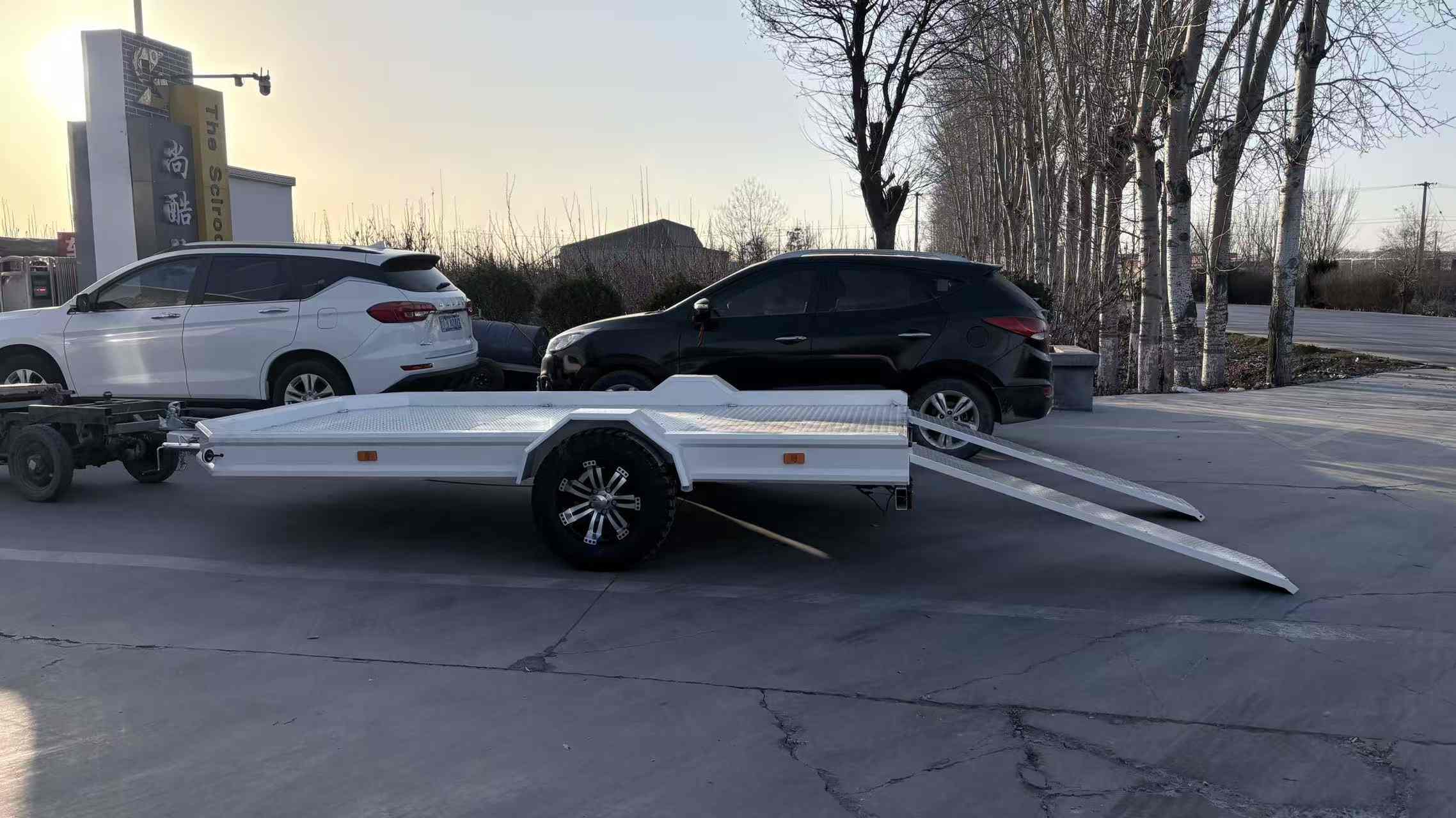 फ्ल्याटबेड डेक एन्टी-स्लिप एल्युमिनियम प्लेट (वा टिकाउ स्टिल प्लेट) बाट निर्माण गरिएको हो, जसले ढुवानीको समयमा कार्गोलाई सार्नबाट रोक्न उच्च-कर्षण सतह प्रदान गर्दछ। एल्युमिनियम डेक विकल्प हल्का र जंग-प्रतिरोधी छ, गीला वा तटीय वातावरणमा बाहिरी प्रयोगको लागि आदर्श छ, जबकि स्टील डेकले भारी, घर्षण भारहरूको लागि अधिकतम स्थायित्व प्रदान गर्दछ। कम-प्रोफाइल डिजाइन र एकीकृत र्याम्पहरूले ATVs, UTVs, र साना उपकरणहरू छिटो र सहज रूपमा लोड गर्न सक्छन्।